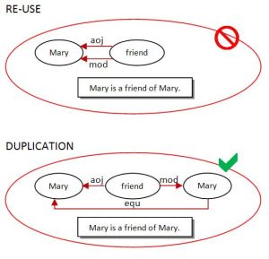 - re-use, i.e., to use one single node as argument of relations in different scopes