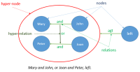 - A hyper-node is a sub-graph, i.e., a node containing relations between nodes.